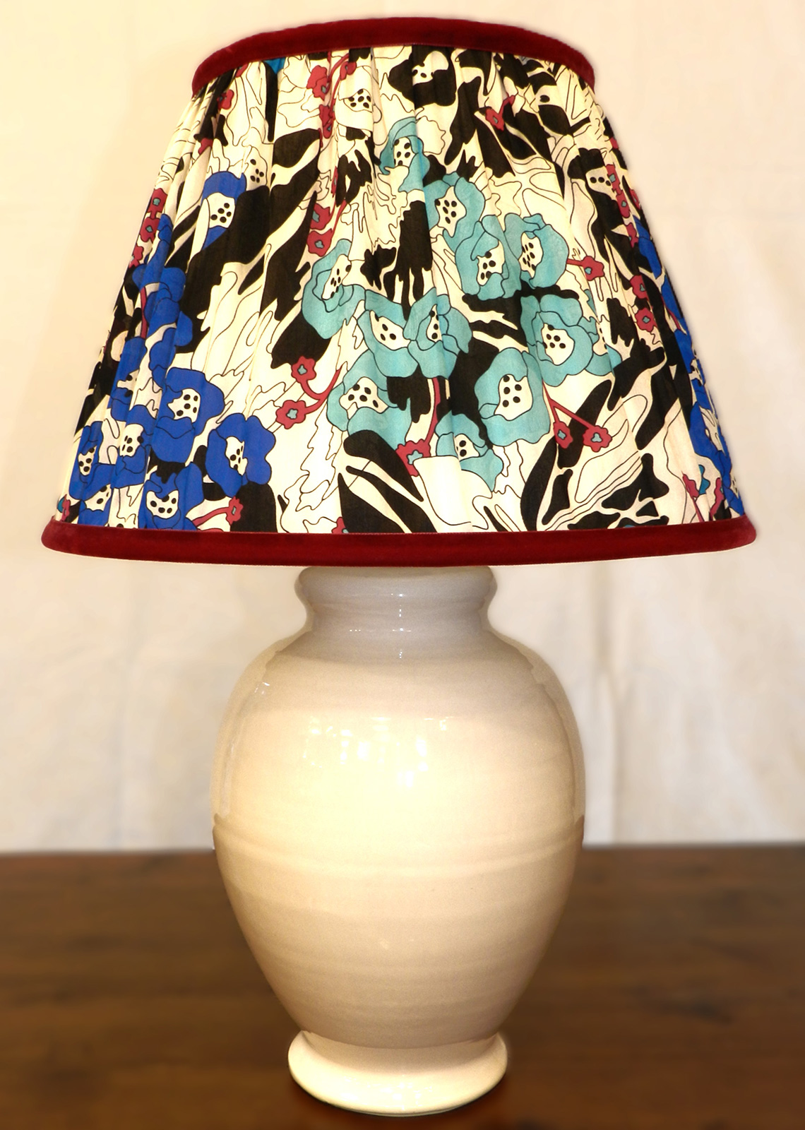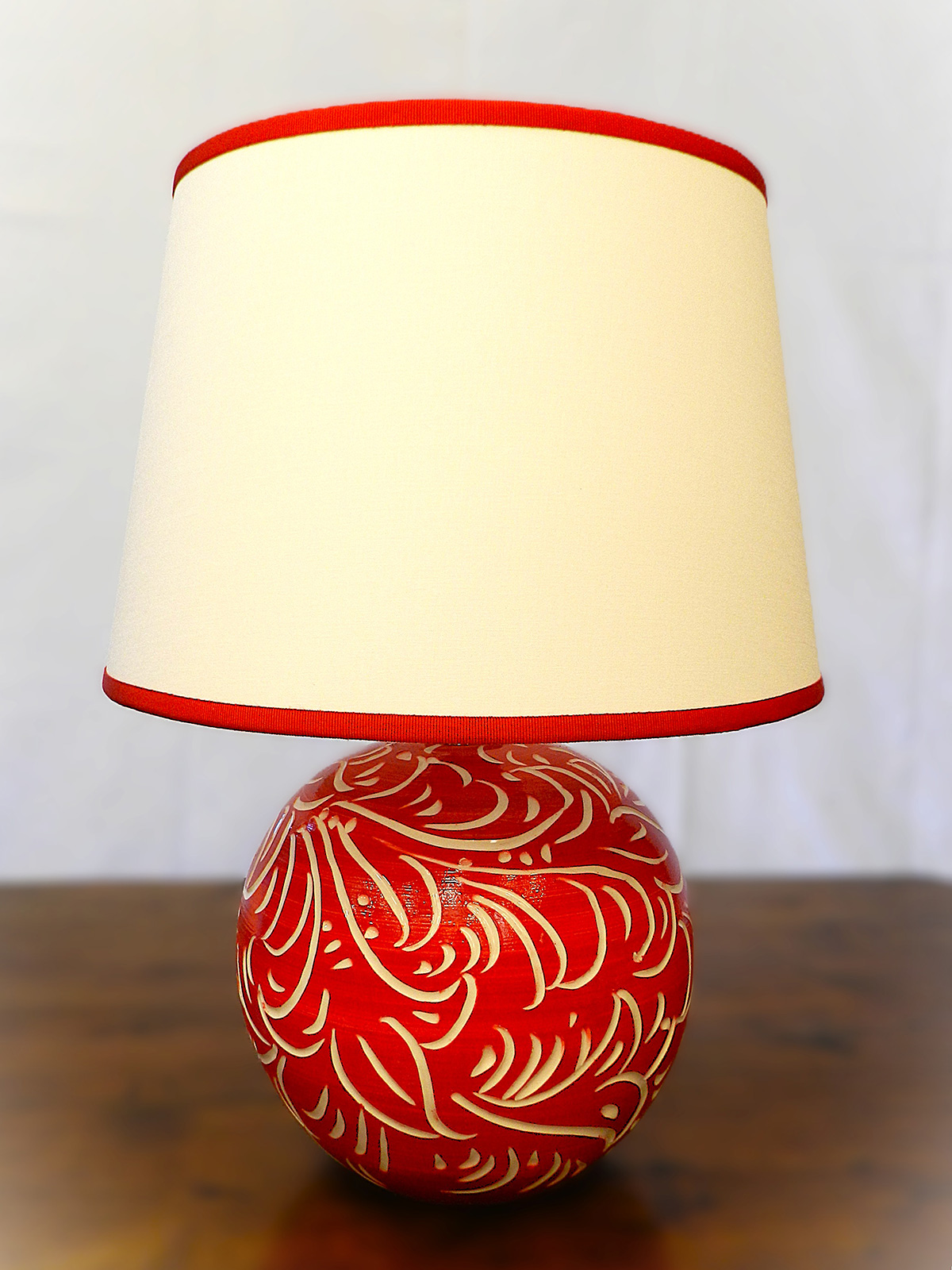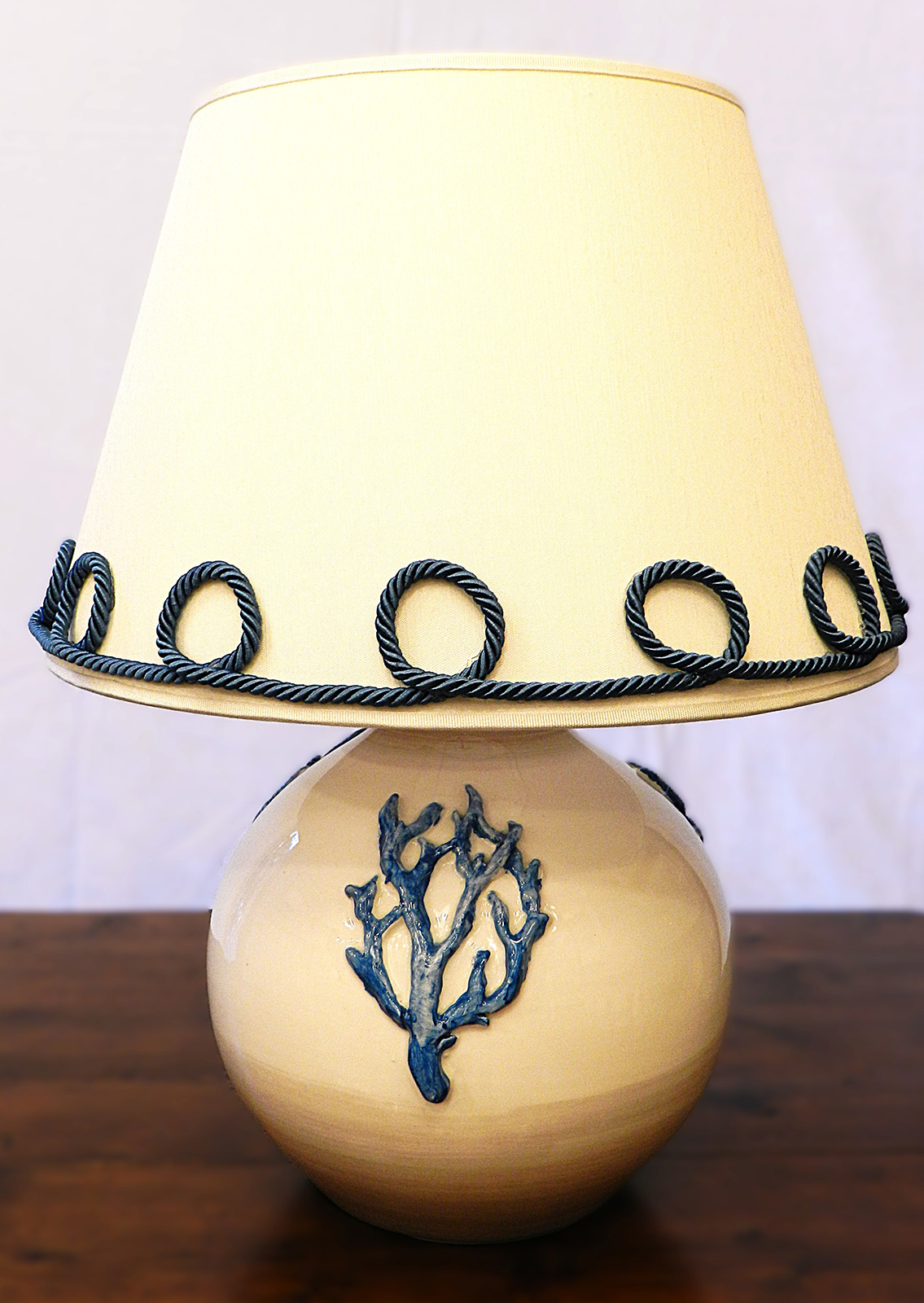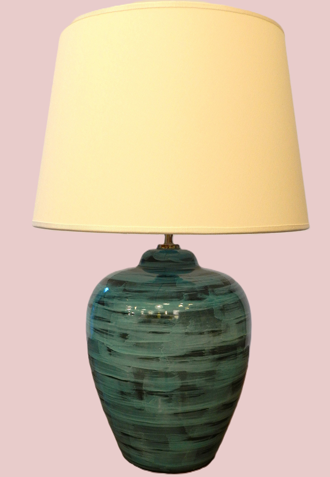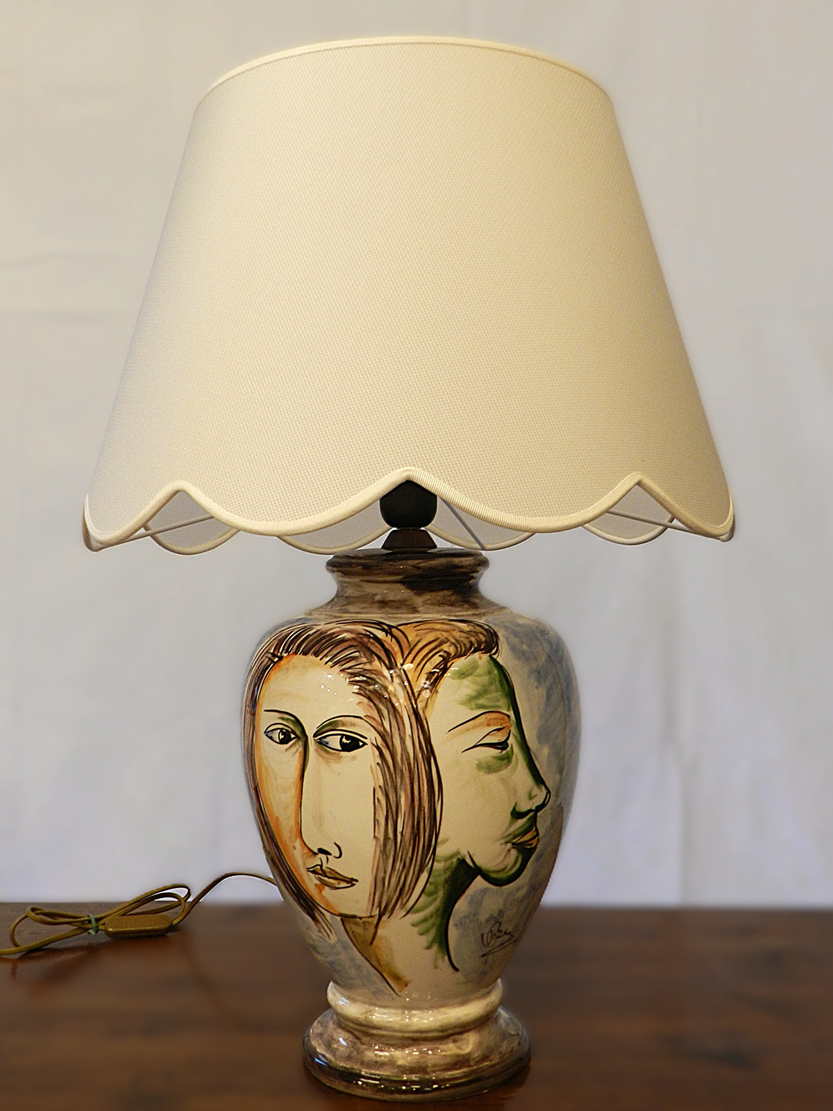 - Lampada in ceramica dipinta a mano e paralume smerlato