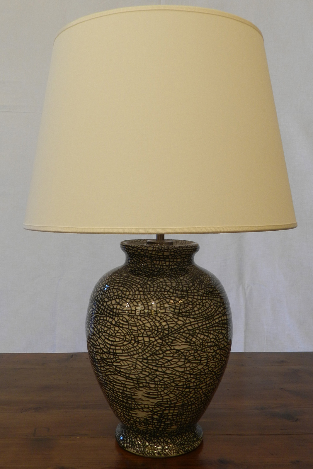 - Lampada da tavolo ceramica craquè nero con paralume in tessuto
