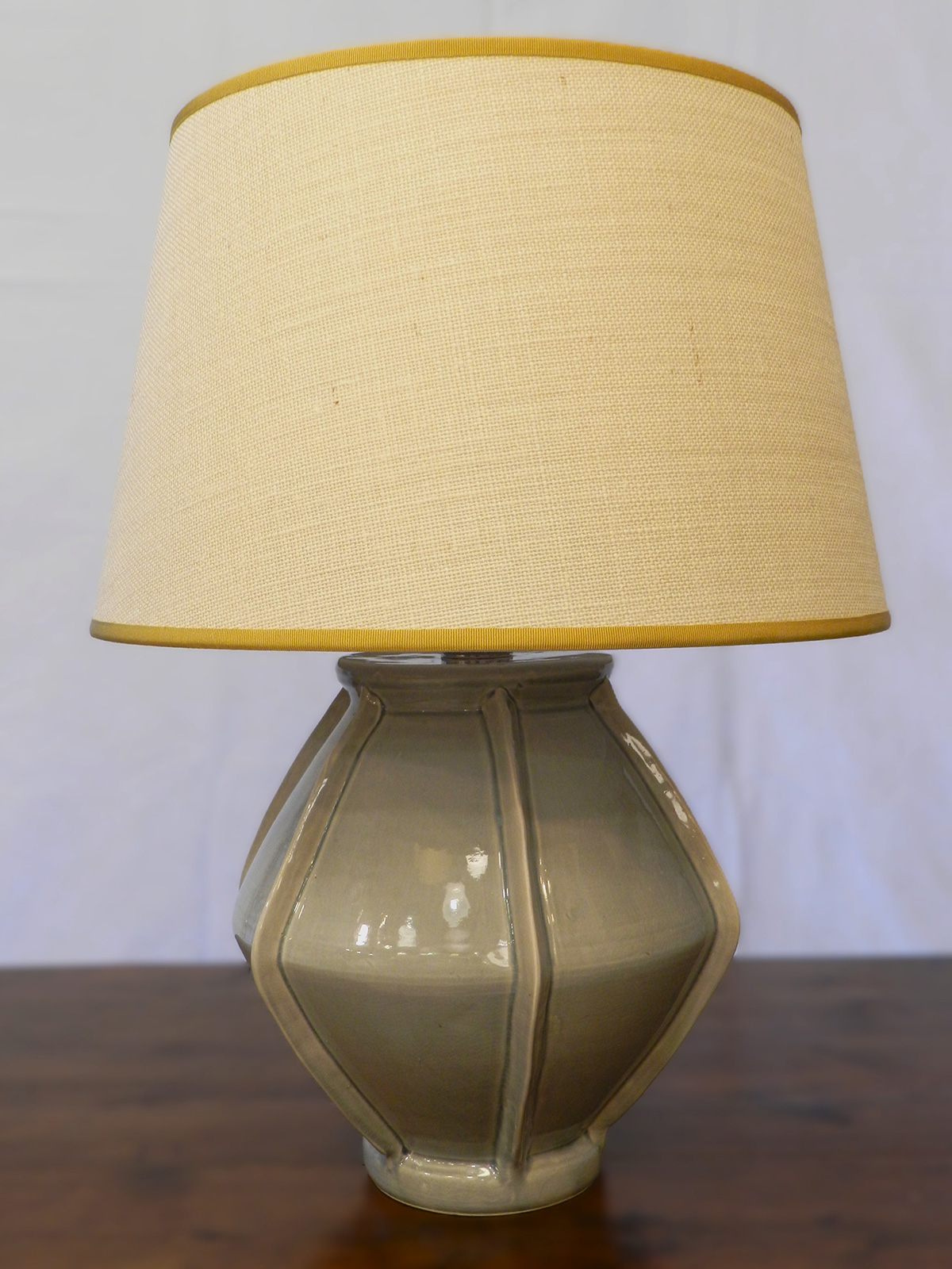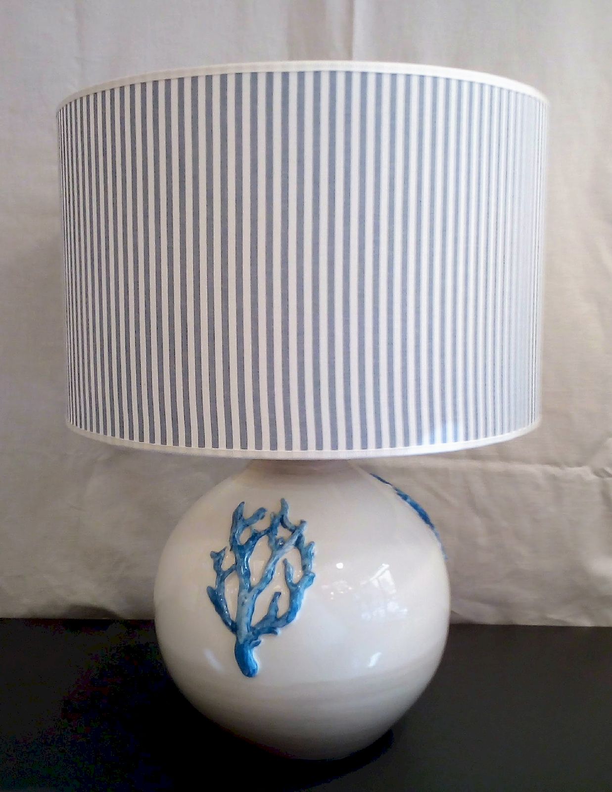 - Lampada da tavolo ceramica rigata con paralume in tessuto