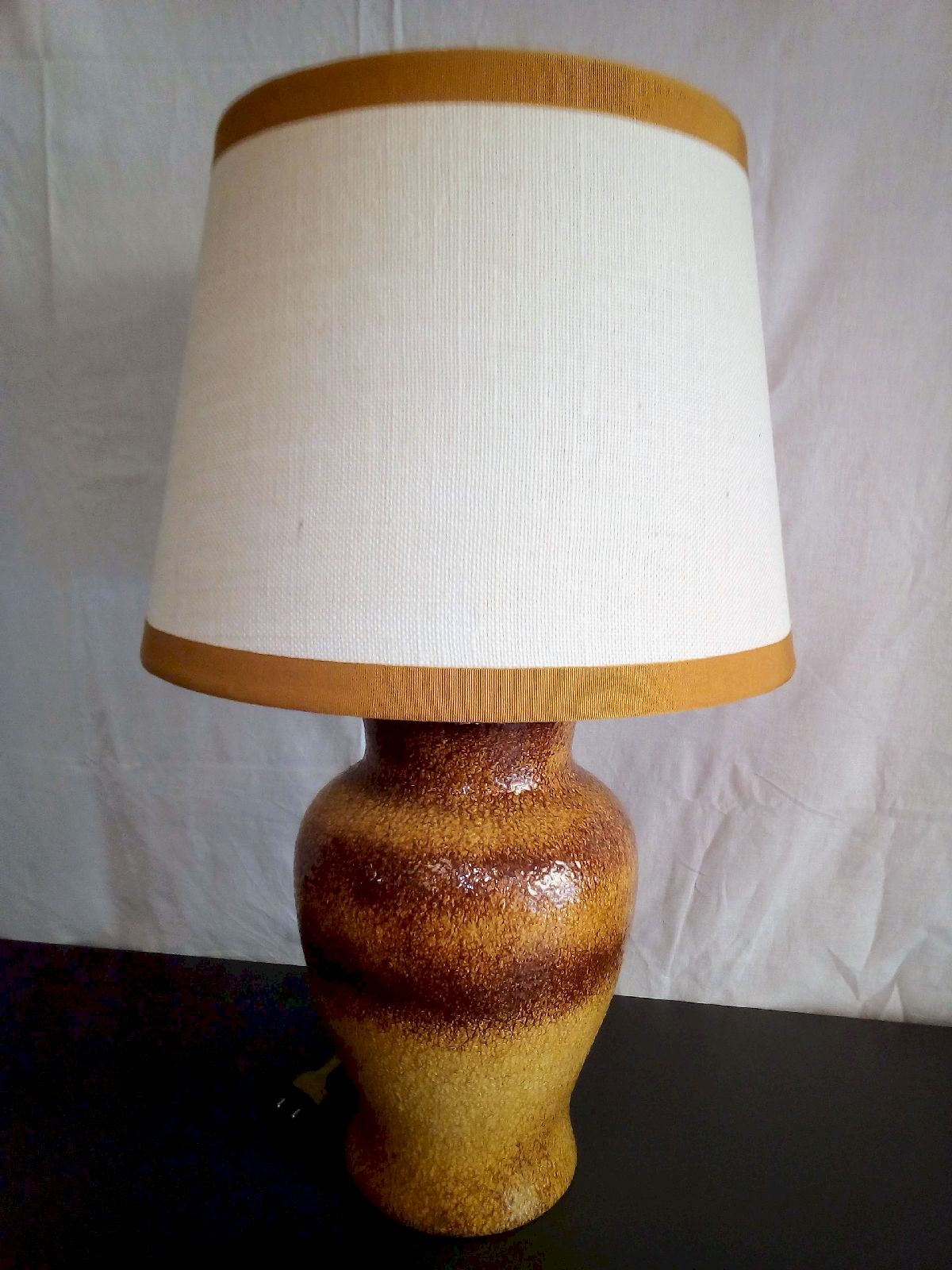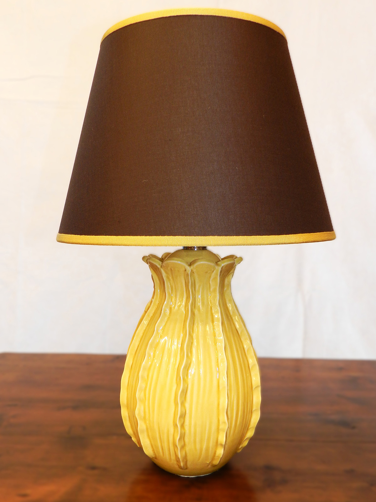 - Lampade da tavolo in ceramica ocra e paralume in tessuto