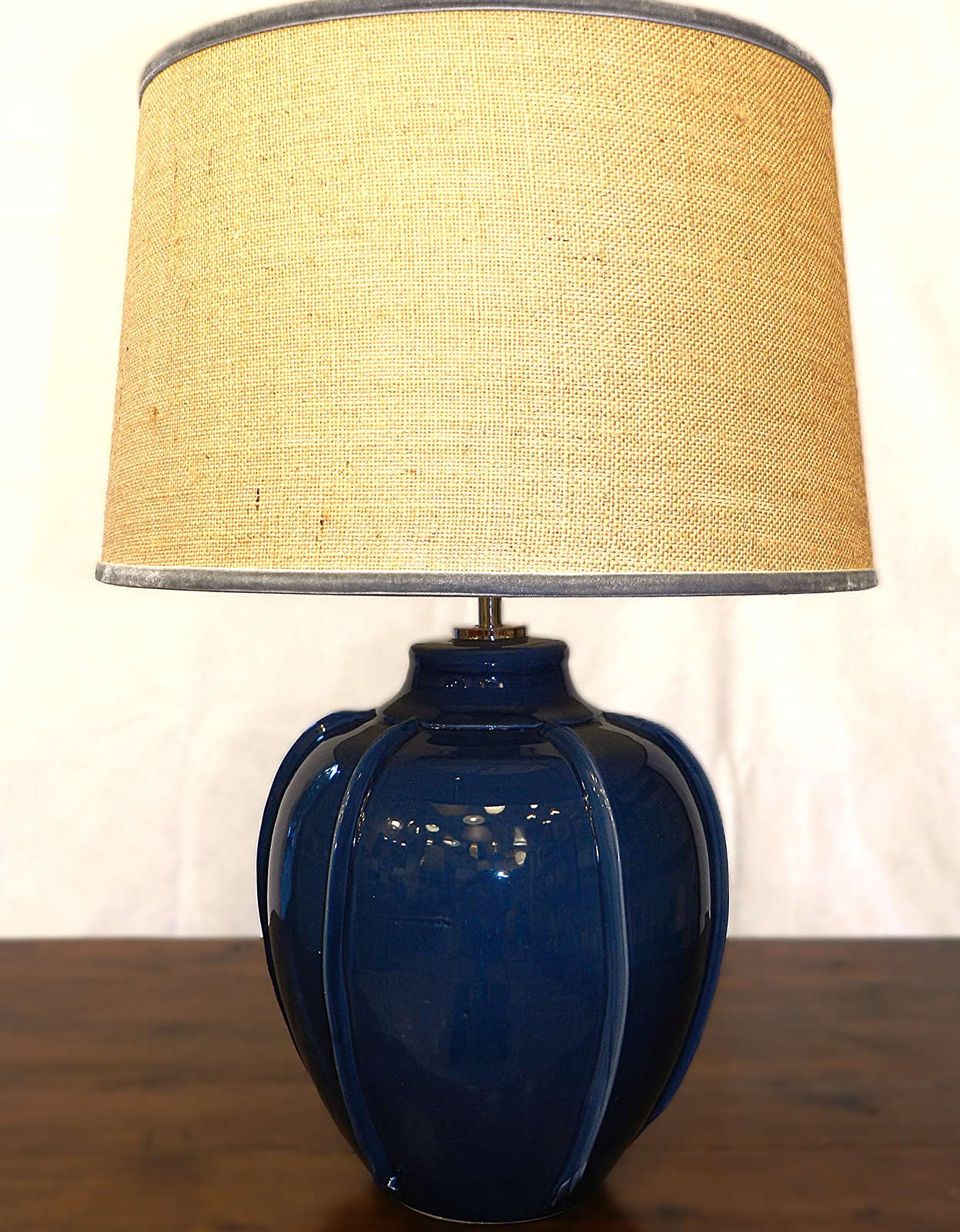 - Lampada da tavolo in ceramica lavorata a mano e paralume in juta